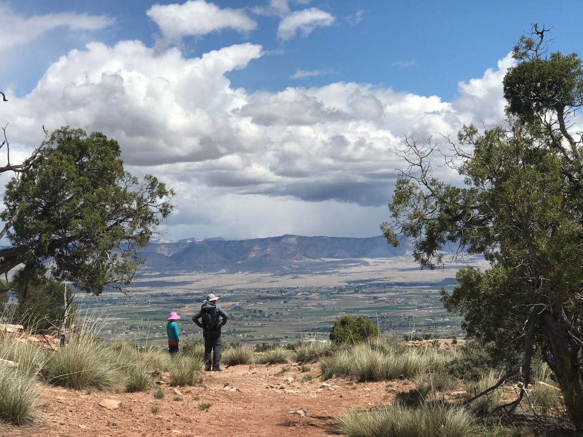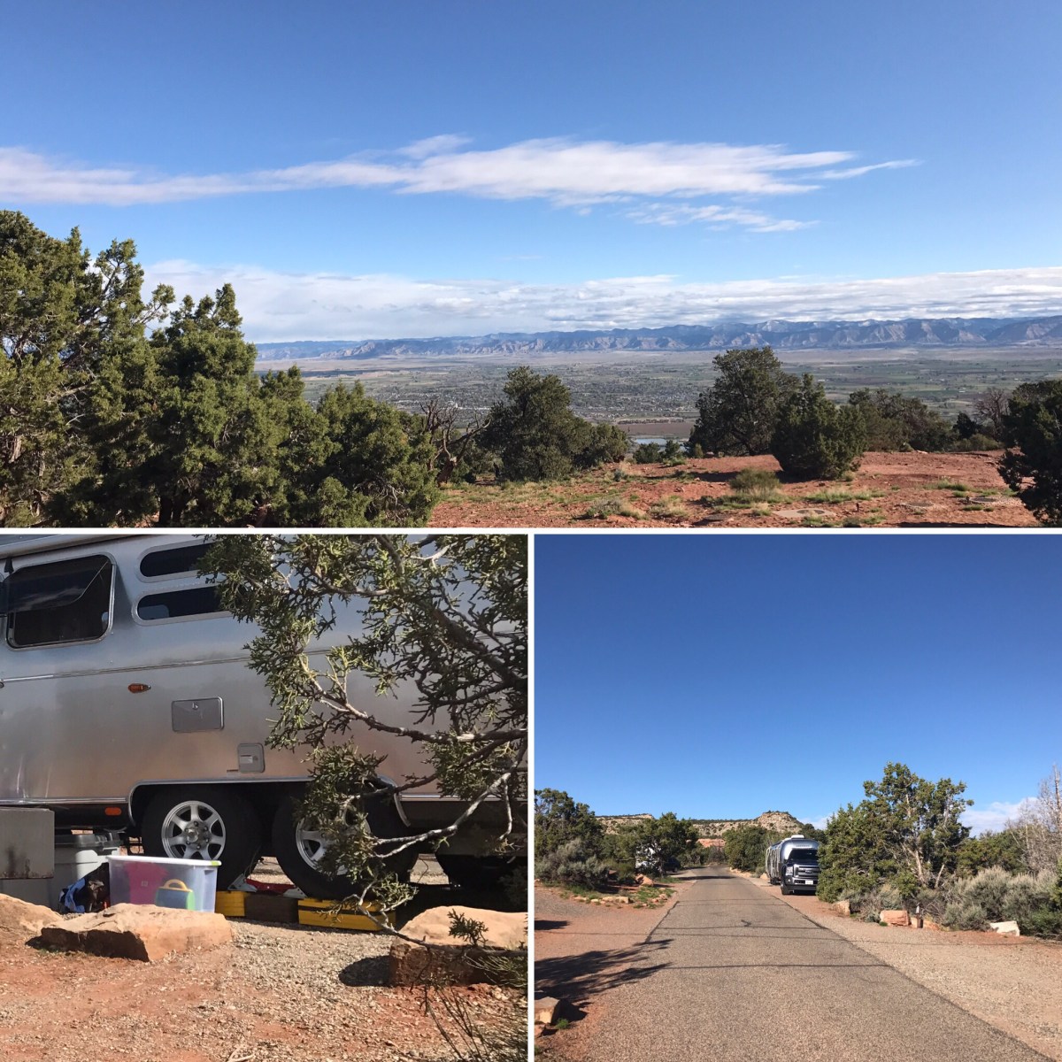We were able to snag a spot at the Saddlehorn Campground inside the monument itself. The campground is gorgeous! Packed with juniper and amazing views, it was a great spot. Except, the spots are nowhere near level. We had to use five leveling blocks per tire. We have 10 leveling blocks and two tires, and the wheels can only handle steps of two levelers at a time. See the problem? Thankfully, I have a degree in mathematics! (And an extra block of wood)