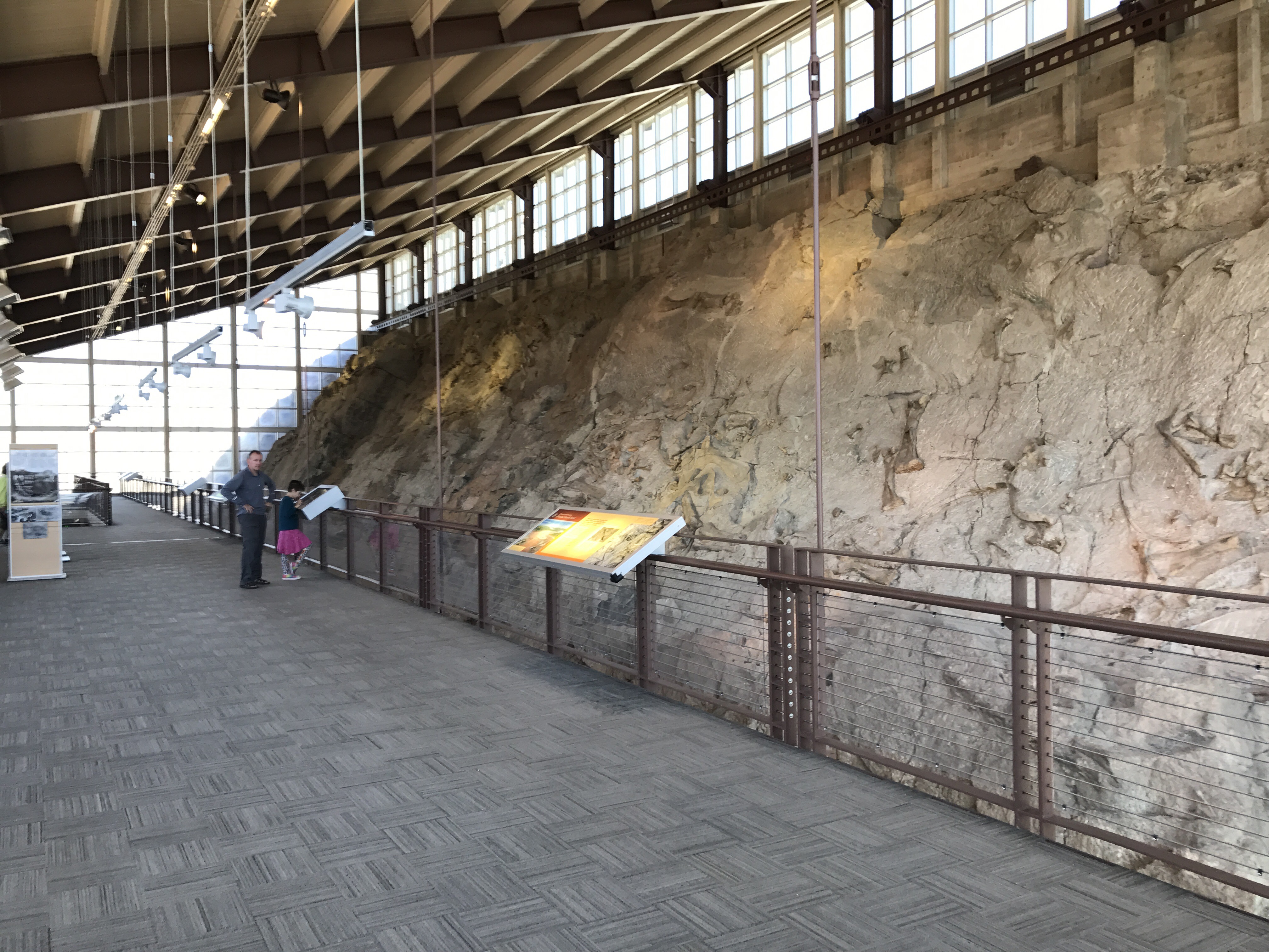 The Quarry is on the Utah side. It has some great specimens displayed in cases, a selection of historical photos (my favorite is the girl in pigtails), but the big attraction is the wall of fossils embedded in sedimentary rock.