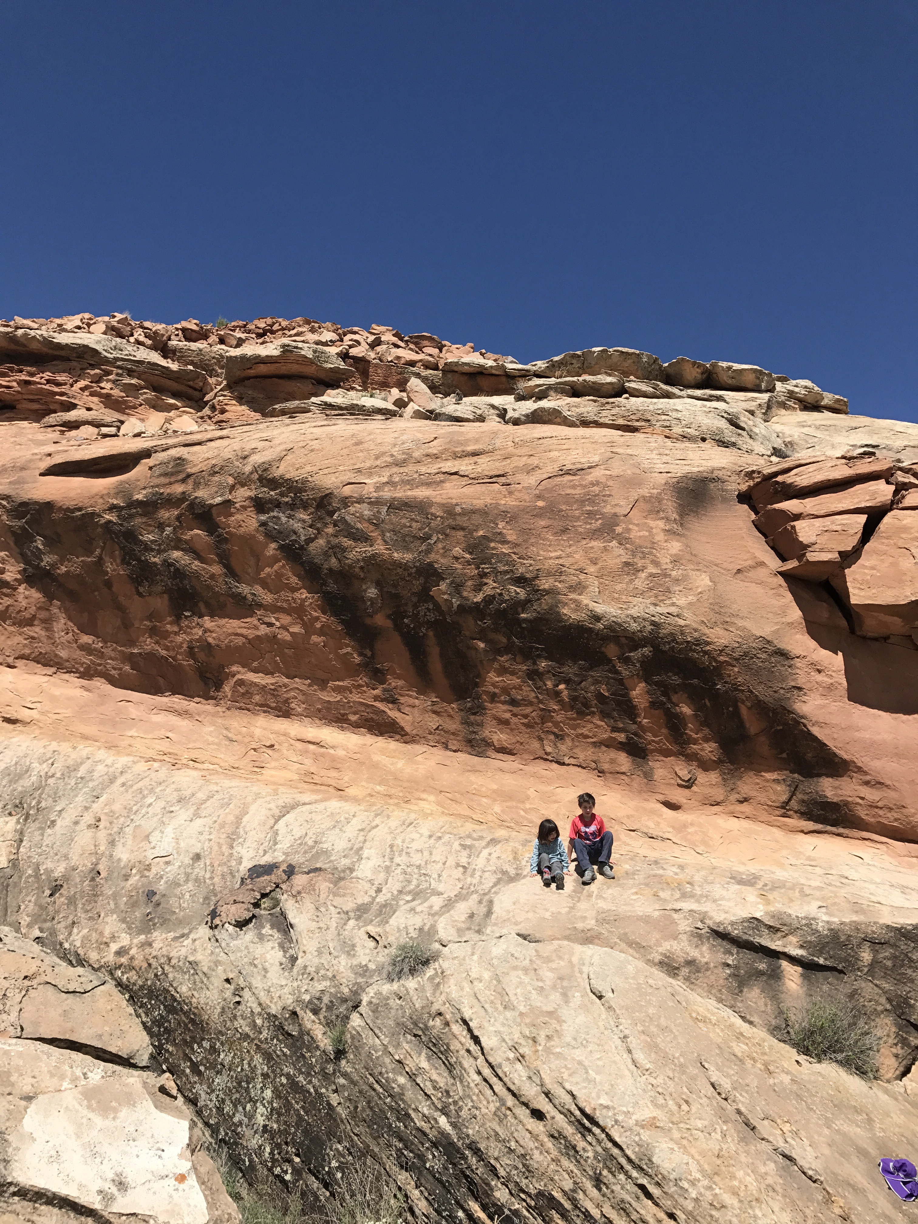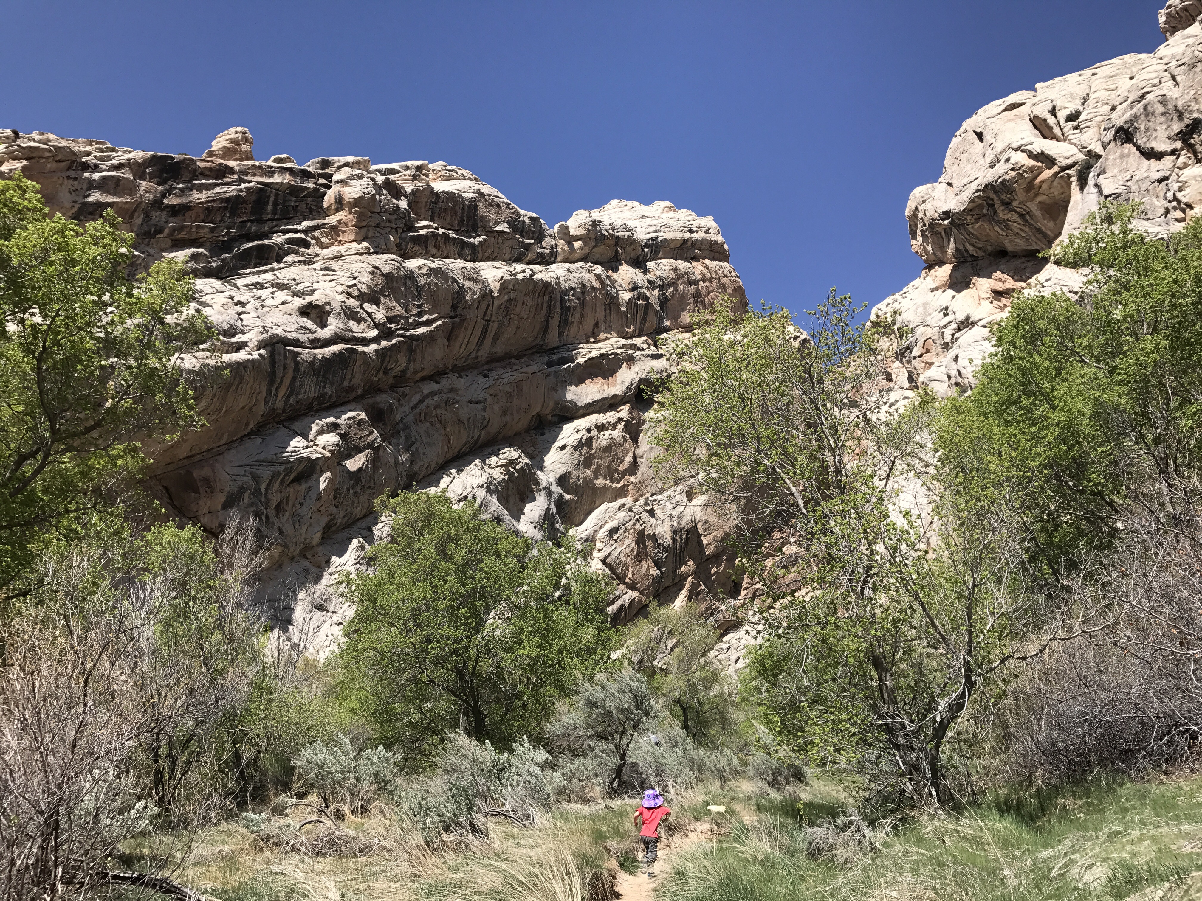 On the Colorado side, we hiked out to Harper’s Corner. The drive alone was worth it. There are a number of scenic pull offs and I strongly encourage any visitors to make their way here. The hike was pretty easy, but scary with kids. There were a lot of steep drop offs and Bear and I kept a pretty tight hold on the girls. The nice part is, the end is wide and fenced with absolutely spectacular views of the confluence of the Yampa and Green rivers.