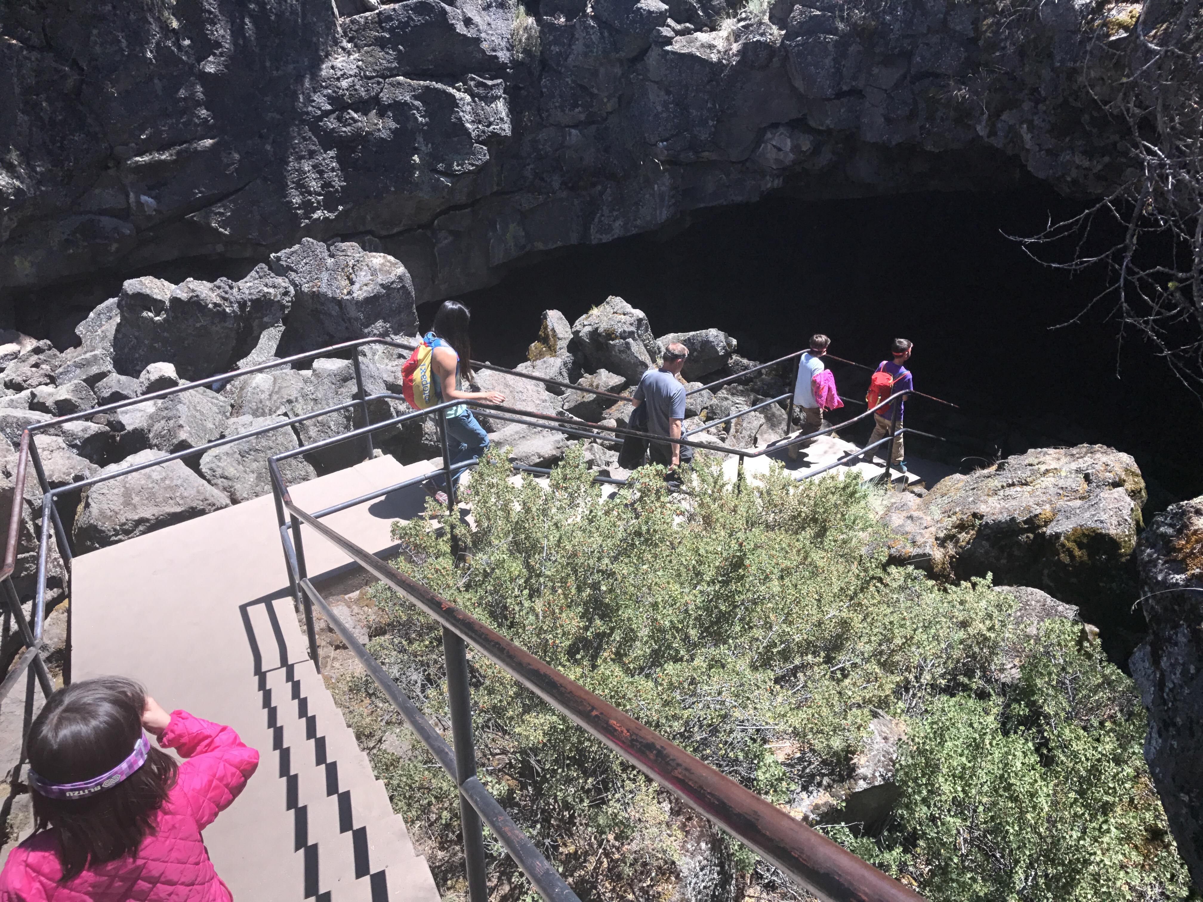 Next up, Subway Cave! As with most caves in the area, this is a lava tube! The tubes are formed from a river of lava. The outer surface of the flow cools faster and hardens. Over time, the walls melt and reform over and over, widening the tube. When the river runs dry, all that will be left is the tube. (When visiting caves, it’s always good to review “white nose syndrome,” a fungus that has devastated the world bat population. The caves in California and surrounding are free of the fungus, and would like to stay so. This cave is bat free, but it’s still good policy. Save the bats!)