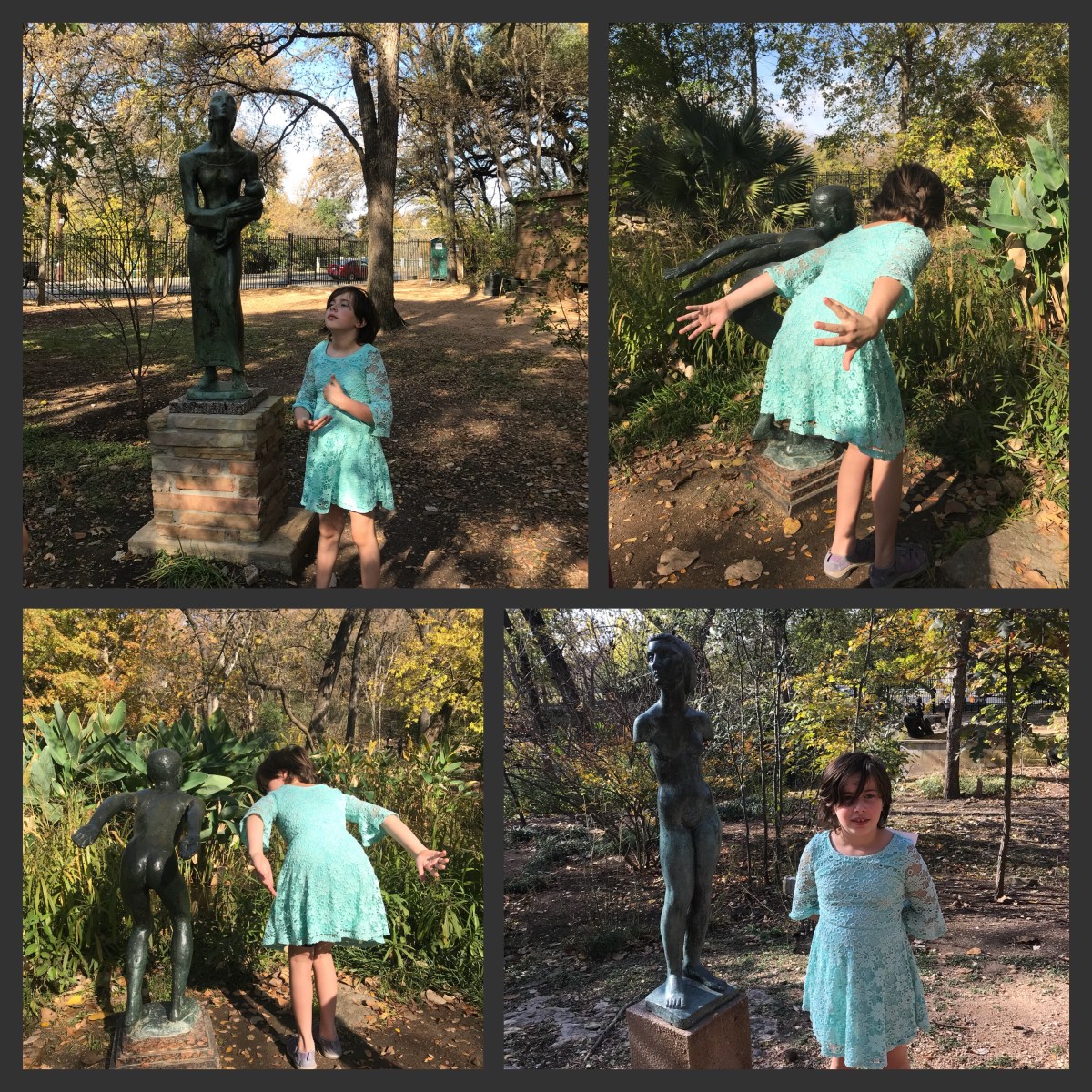 We took a day trip to Austin, to visit a friend of mine. We had a great day getting dumplings and visiting an outdoor sculpture garden. This was a pretty cool place, there was a scavenger hunt for kids and I saw quite a few people doing the touch and feel tour. They were blindfolded and would feel the art. (Side note: a sculpture garden with touchable art… take the kids, make sure they pose with the statues!)